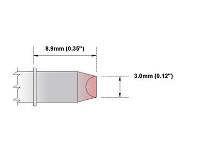 This is 3 mm 90° Chisel Soldering Iron Tip manufactured by Thermaltronics. The manufacturer part number is M8CH180. The tip is 3 mm in size. Its tip is of m series . Its tip is at 90° angle . The product is highly suitable for tmt-9000s-1, tmt-9000s-2. The tip is designed with a straight chisel shape.