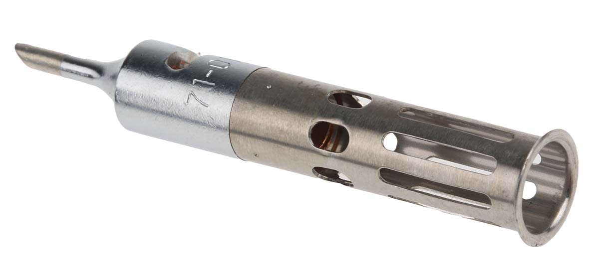 This is 71 01 03 3 mm 45° Straight Conical Hoof Soldering Iron Tip for use with WP2 Pyropen Jr Soldering Iron manufactured by Weller. The manufacturer part number is T0051616799. The tip is 2 mm in size. It has a model number 71 01 03. Its tip is of 71 01 03 series . Its tip is at 45° angle . The product is highly suitable for junior pyropen. The tip is designed with a bevel shape.