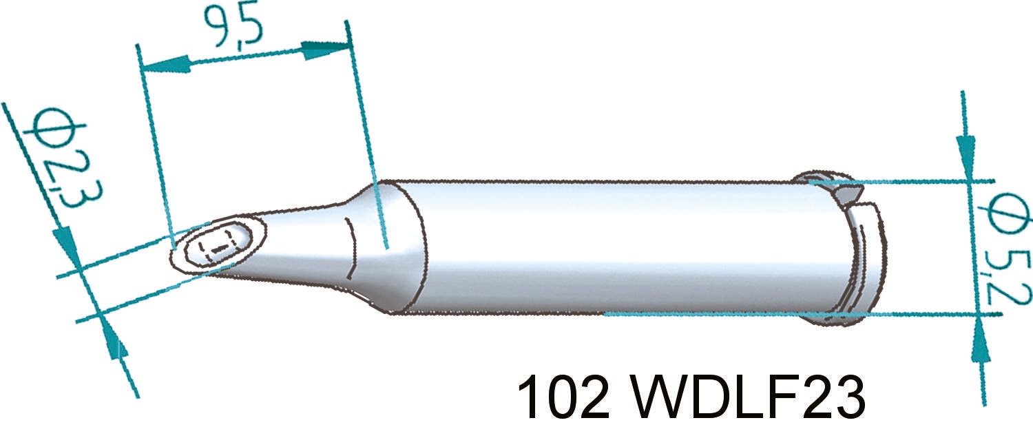 This is 2.3 mm Straight Conical Hoof Soldering Iron Tip manufactured by Ersa. The manufacturer part number is 102WDLF23. Its tip is of serie 102 series . The tip is designed with a straight hoof shape. The tip is 2.3 mm in size. The product is highly suitable for i-tool.