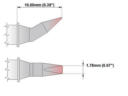 This is 1.78 mm 30° Bent Chisel Soldering Iron Tip manufactured by Thermaltronics. The manufacturer part number is M7CB225. The tip is 1.78 mm in size. Its tip is of m series . Its tip is at 30° angle . The product is highly suitable for mx-500, mx-5000, mx-5200, tmt-9000s-1, tmt-9000s-2. The tip is designed with a bent chisel shape.