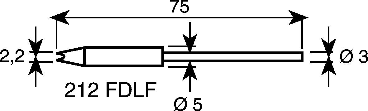 This is 2.2 mm Straight Chisel Soldering Iron Tip manufactured by Ersa. The manufacturer part number is 0212FDLF. Its tip is of serie 212 series . The tip is designed with a chisel shape. The tip is 2.2 mm in size. The product is highly suitable for micro tool.