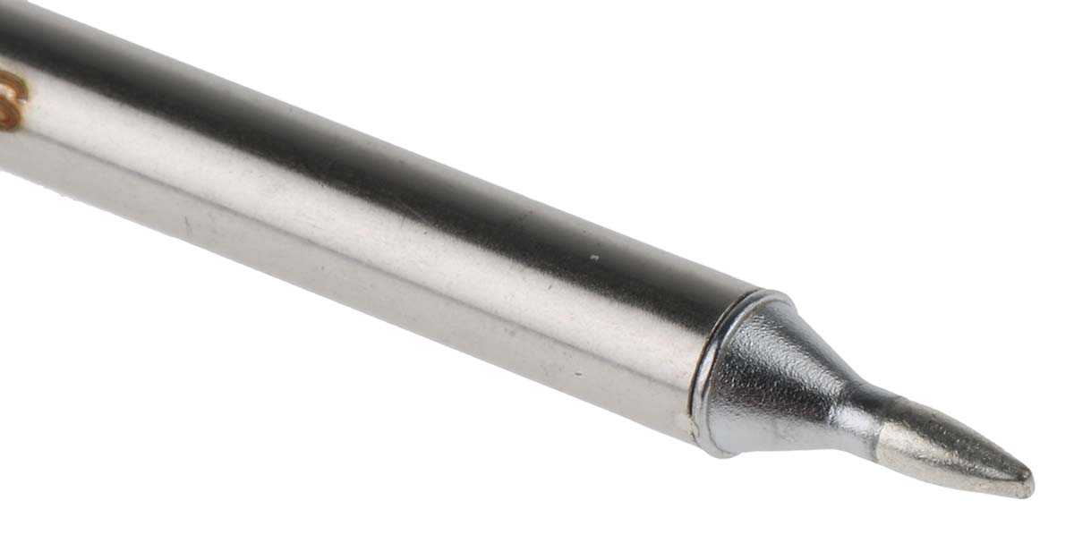 This is 1 mm 30° Straight Chisel Soldering Iron Tip manufactured by Metcal. The manufacturer part number is STTC-125. The tip is 1 mm in size. It has a model number sttc. Its tip is of sttc-1 series . Its tip is at 30° angle . The product is highly suitable for mx-h1-av, mx-rm3e. The tip is designed with a chisel shape.