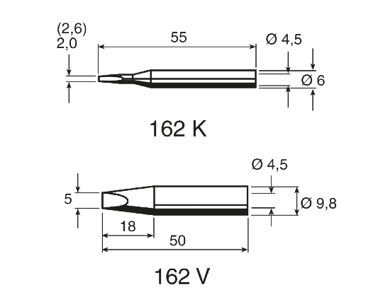 This is 2.6 mm Straight Chisel Soldering Iron Tip manufactured by Ersa. The manufacturer part number is 162KD/SB. Its tip is of serie 162 series . The tip is designed with a chisel shape. The tip is 2.6 mm in size. The product is highly suitable for multitip c15, tip 260.
