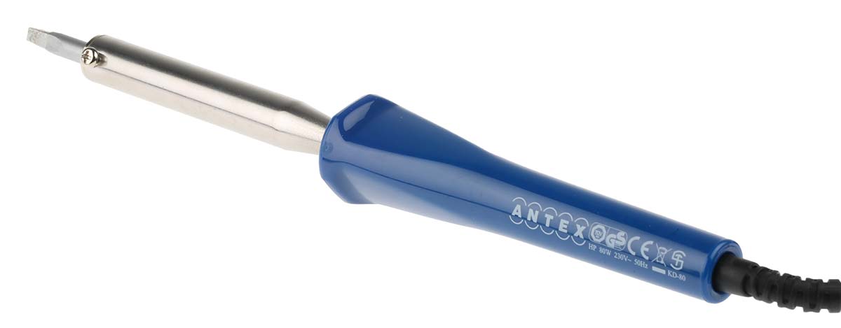This is 230V ac Electrical Soldering Iron 80W Euro Plug for use with Soldering Work with Lead Free Solder manufactured by Antex Electronics. The manufacturer part number is SQ8X27A. This product carries 80w. It supports electric type power . The plug is a highly reliable type c - euro plug with long service life. Its input voltage is 230v. The product is highly suitable for soldering work with lead free solder. The soldering tip has 380°c temperature . It comes in soldering iron configuration.