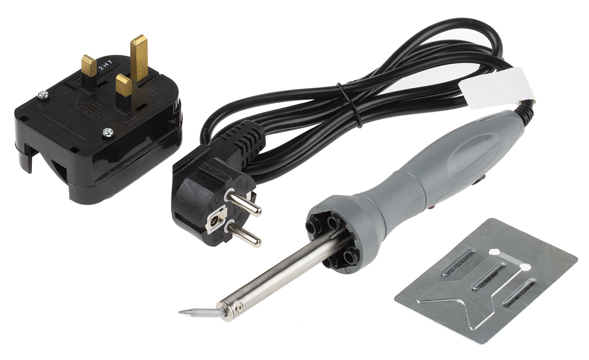 This is LED Light 240V ac Electrical Soldering Iron 40W Type F - Schuko plug with UK Convertor manufactured by RS Pro. The manufacturer part number is 144-3701. Priced to Clear Options - yes. This product carries 40w. It supports electric type power . The plug is a highly reliable type f - schuko plug with uk convertor with long service life. It has a model number led light. Its input voltage is 240v. It comes in soldering iron configuration.