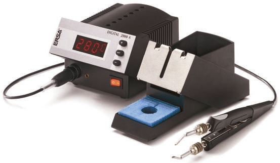 This is Soldering Station DIGITAL 2000A 230V +450°C +150°C to manufactured by Ersa. The manufacturer part number is DIG20A45. Additionally, the product is supplied with 1 outputs. It features a remarkable digital display. This product carries 80w. It is desoldering / soldering tasks supported . It is suitable to be used in a primary application category like soldering & desoldering . The plug is a highly reliable type f - schuko plug with long service life. It has a model number digital 2000a. Its input voltage is 230v. Its output power is 80w. ESD Safety - yes. The soldering tip has 450°c temperature . It has a maximum operating temperature of 450°c.