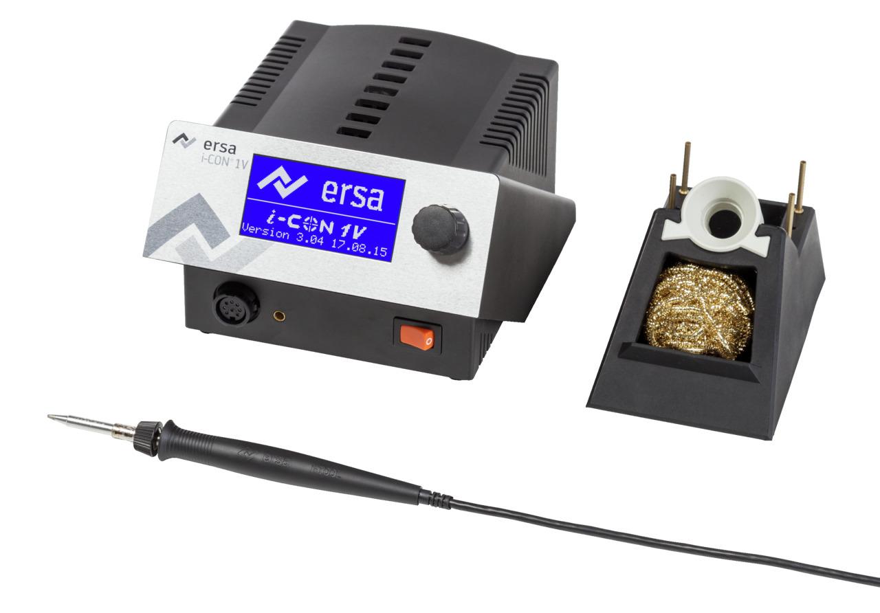 This is 0IC1100V Soldering Station 80W 230V ac manufactured by Ersa. The manufacturer part number is 0IC1100V0C. Additionally, the product is supplied with 1 outputs. It features a remarkable lcd display. This product carries 150w. It is desoldering / soldering tasks supported . The plug is a highly reliable type f - schuko plug with long service life. It has a model number 0ic1100v. Its input voltage is 230v. Its output power is 150w. ESD Safety - yes. The soldering tip has 450°c temperature . It has a maximum operating temperature of 450°c.