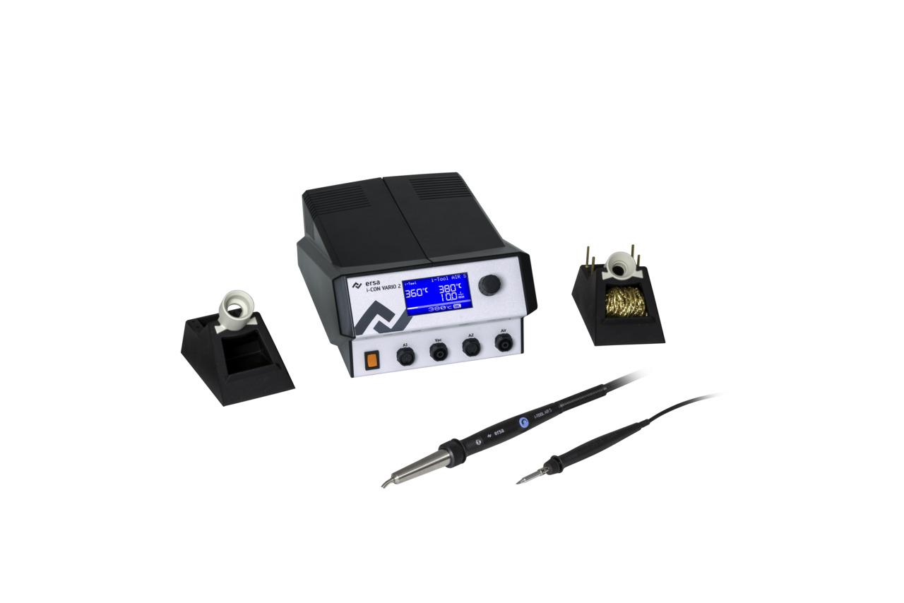 This is 0ICV2000A Soldering Station 200W 230V ac manufactured by Ersa. The manufacturer part number is 0ICV2000AI. Additionally, the product is supplied with 1 outputs. It features a remarkable lcd display. This product carries 200w. It is desoldering / soldering tasks supported . The plug is a highly reliable type f - schuko plug with long service life. It has a model number 0icv2000a. Its input voltage is 230v. Its output power is 200w. ESD Safety - yes. The soldering tip has 450°c temperature . It has a maximum operating temperature of 450°c.