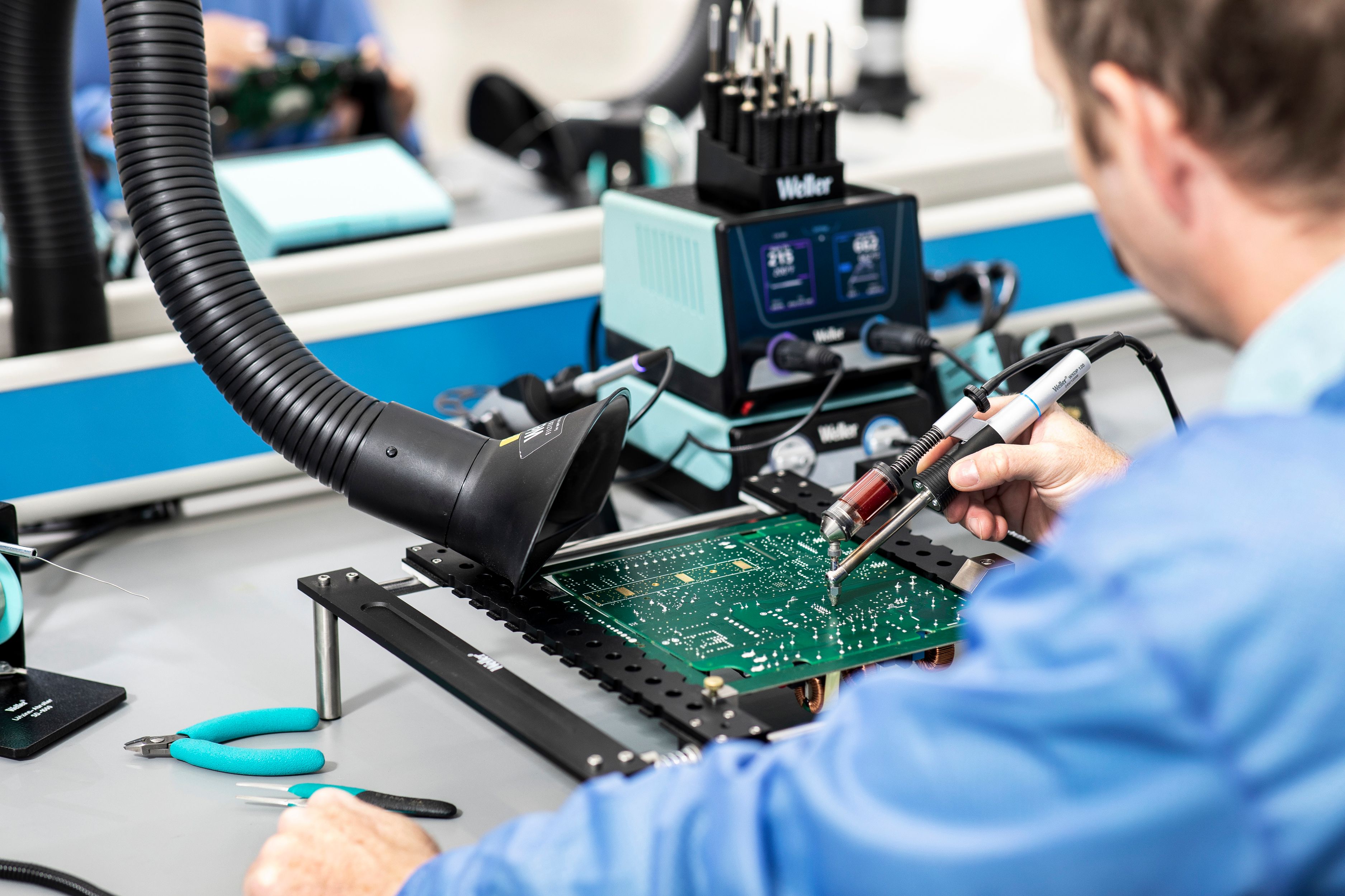 This is WXair Additional Module 70W 100 → 230V manufactured by Weller. The manufacturer part number is T0053452699. Additionally, the product is supplied with 2 outputs. This product carries 70w. It is desoldering / hot air tasks supported . It is suitable to be used in a primary application category like desoldering & hot air . The plug is a highly reliable type f - schuko plug, type g - british 3-pin with long service life. It has a model number wxair. Its input voltage is 100 - 240v. Its output power is 70w. ESD Safety - yes.
