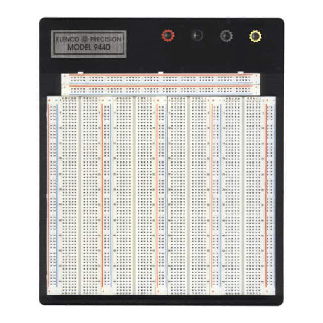This is manufactured by Elenco. The manufacturer part number is 9440. It is comprised of 504 5-tie point terminals. It is composed of 7 distribution buses. It is assigned with possible HTSUS value of 8534.00.0000. It is shipped in bulk package . It has 4 binding posts. It is composed of 4 terminal strips. It comes in assembly (on frame) configuration. It consists of a total of 3220 tie points. The product is designated with the ear99 code number.