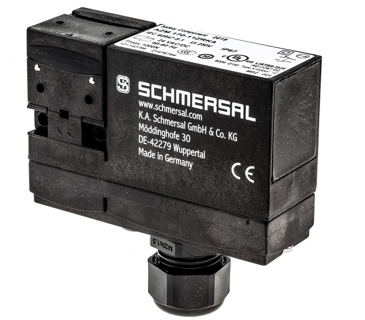 This is AZM 170 Solenoid Interlock Switch Power to Lock 24 V ac/dc manufactured by Schmersal. The manufacturer part number is AZM 170-11ZRKA 24 VAC/DC. It has 24v maximum DC voltage. A bespoke product carries 24v of maximum AC voltage. It is IP rated with ip67. The product azm 170, is a highly preferred choice for users. It has the power to lock . Its accurate length is 30mm. It includes an actuator no . The product also features robust plastic housing material. Furthermore, the product is 90mm wide. The product comes in 84mm depth. Its power consumption is approximately 10w . Features 24v ac/dc supply voltage. It includes nc safety contacts . It has a standard 1/2 in npt conduit entry . It features azm 170 range. It has 1no high-quality auxiliary contact .