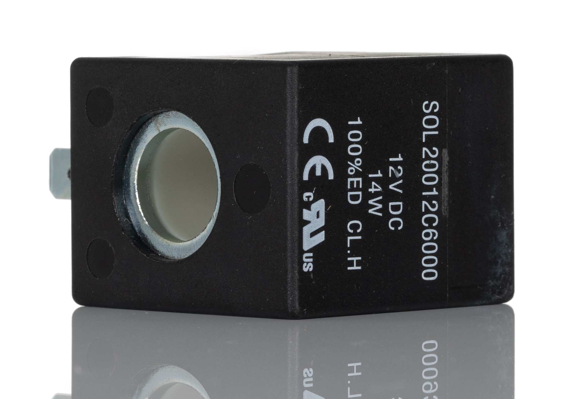 This is Solenoid Coil 12V dc manufactured by RS PRO. The manufacturer part number is 187-5716. It is IP rated with ip67. Features 12 v dc supply voltage. Has a hole diameter of 13mm.