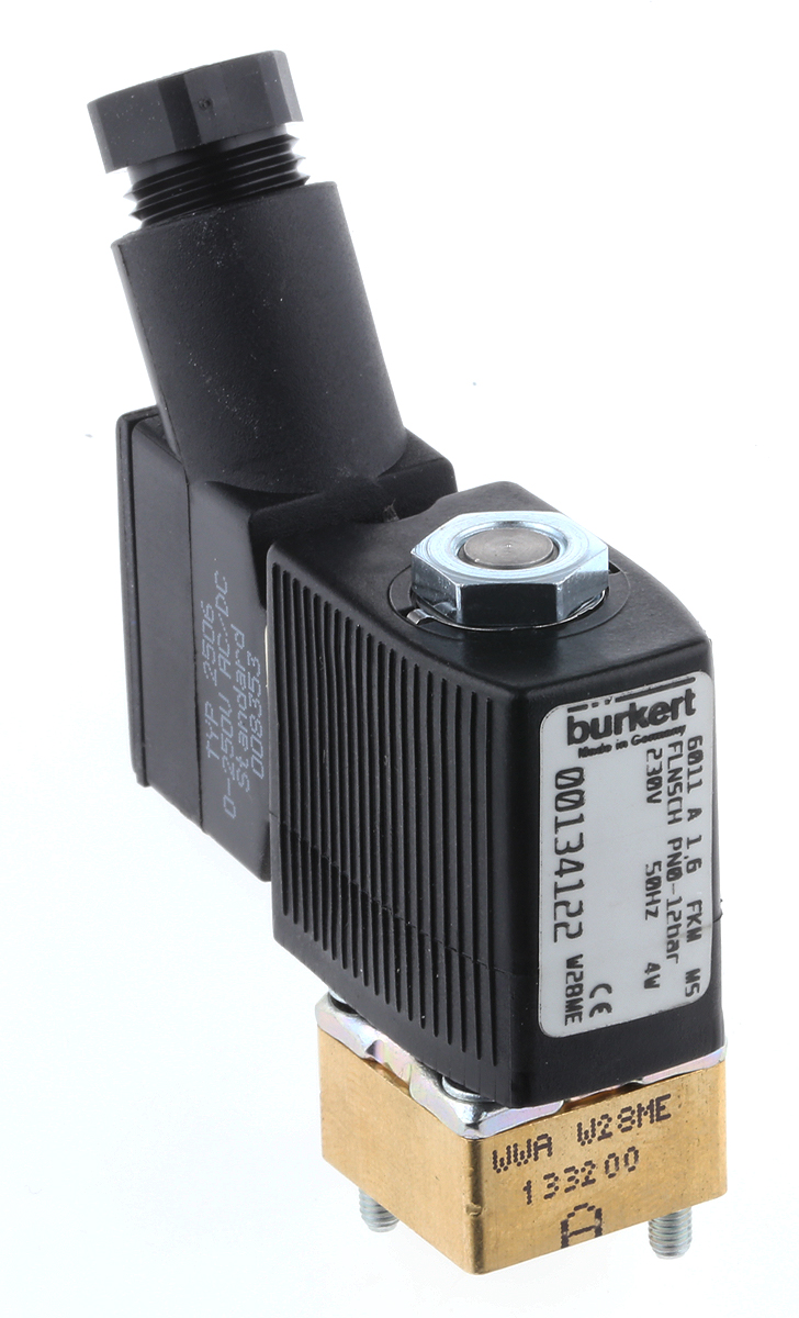 This is Solenoid Valve 2 port NC 230 V ac manufactured by Burkert. The manufacturer part number is 134122. Its flow factor Kv is 0.06m³/h . The product has -10 → +55 °c of operating temperature range. It provides up to 12 bar maximum working pressure. The product 6011, is a highly preferred choice for users. The default valve position is nc . It has a maximum 10ms opening time . It bears 1.6mm of orifice diameter. This product features 2 number of ports. The product's body is nicely designed from brass materials. Features 230 v ac supply voltage. Whereas, the minimum operating temperature of the product is -10°c. Furthermore, it is suitable for liquid, neutral gas, technical vacuum applications . It allows to operate using direct. It has a maximum operating temperature of +55°c. It comes in 2/2 configuration. In addition, it has a maximum 15ms closing time .