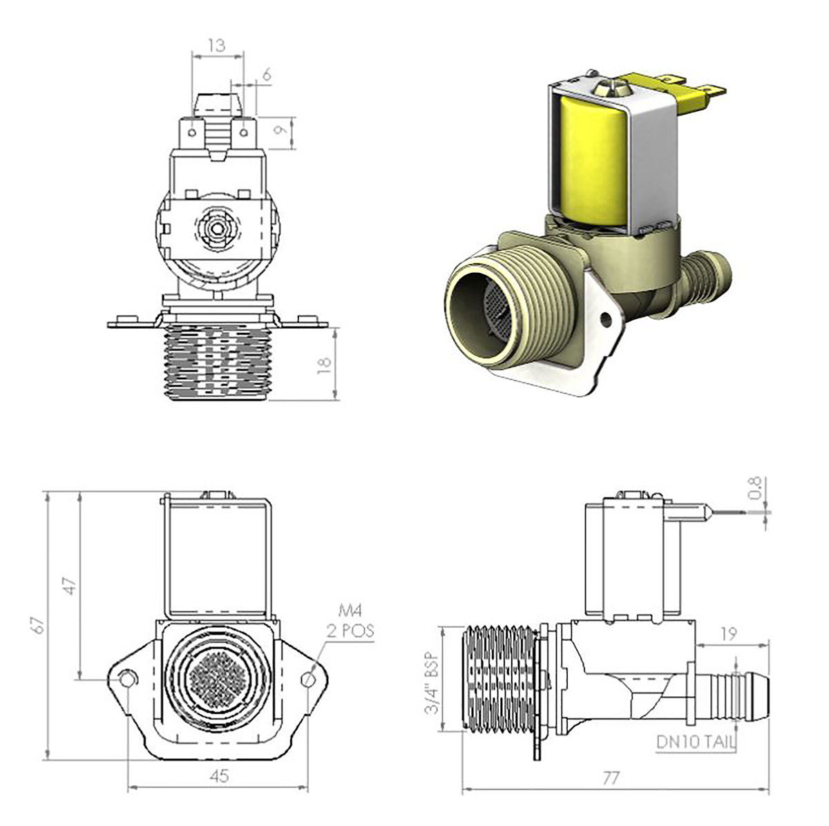 This is Solenoid Valve 2 port NC 24 V ac/dc 3/4in manufactured by RS PRO. The manufacturer part number is 190-4141. It provides up to 10 bar maximum working pressure. It has a maximum operating temperature of +60°c. It has a standard 3/4in size connection . This product features 2 number of ports. It has a standard 3/4 in bsp connection . It has a/an bsp thread standard or connection type . Features 24 v ac/dc supply voltage. The connector comes in male. The default valve position is nc . It allows to operate using solenoid. It comes in 2 (port) configuration. Furthermore, it is suitable for water applications .