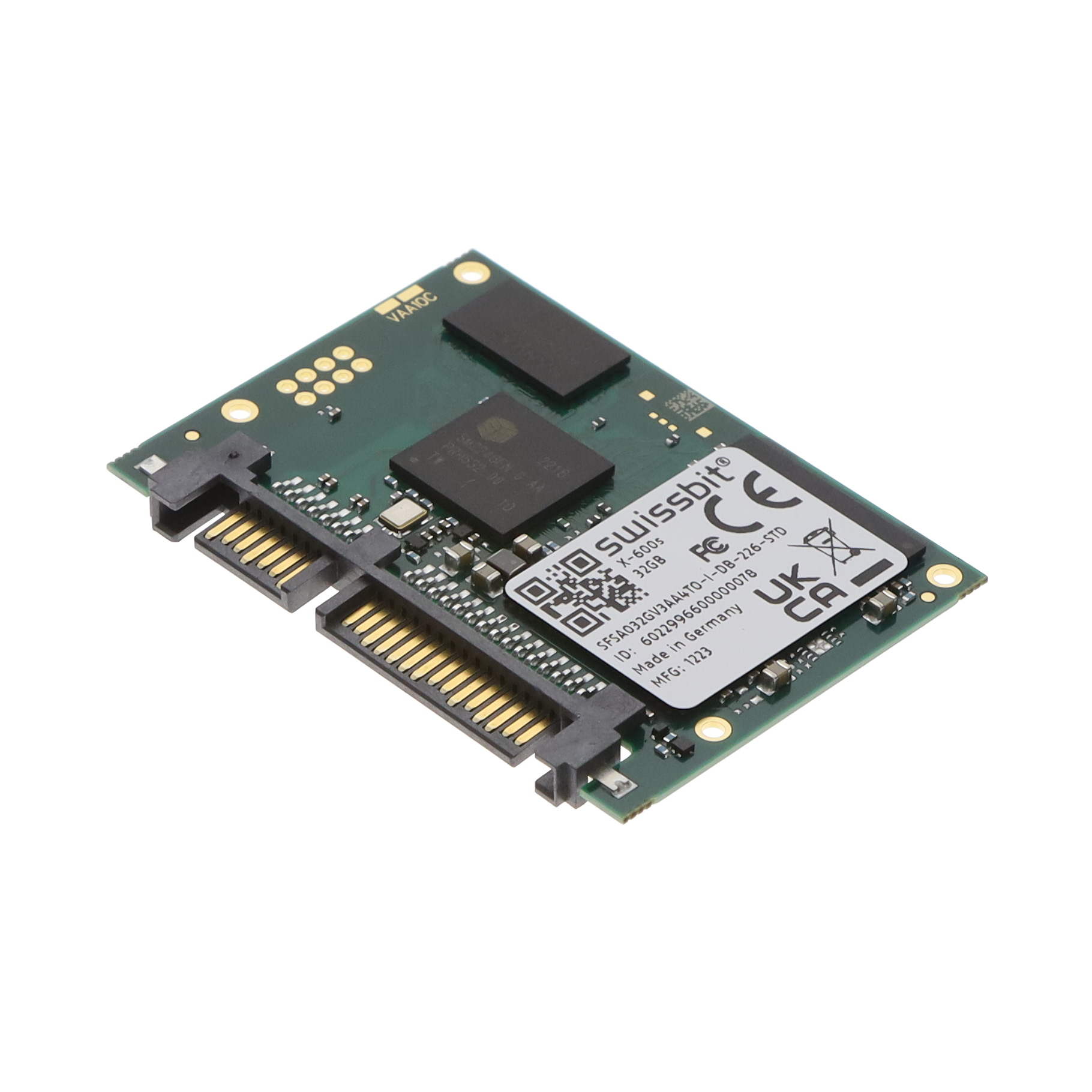 This is manufactured by Swissbit. The manufacturer part number is SFSA032GV3AA4TO-I-DB-226-STD. It is assigned with possible HTSUS value of 8523.51.0000. The product is rohs3 compliant. The product has -40°c ~ 85°c operating temperature range. It holds a typical memory size of 32gb. It comes in sata iii configuration. In addition, bulk is the available packaging type of the product. In addition, it is reach unaffected. While the write speed of the product includes 250mb/s. The read speed of the bespoke device is 520mb/s. The swissbit's product offers user-desired applications. The product's diameters include 54.00mm x 39.00mm x 4.00mm. It has a long 6 weeks standard lead time. It has a form factor of slim-sata. Its typical moisture sensitivity level is 1 (unlimited). The product x-600s, is a highly preferred choice for users. It is a type of solid state drive (ssd) flash - nand (slc) memory type. It has optimum voltage supply of 3.3v, 5v. Moreover, it corresponds to sfsa032, a base product number of the product. The product is designated with the 3a991b1a code number.
