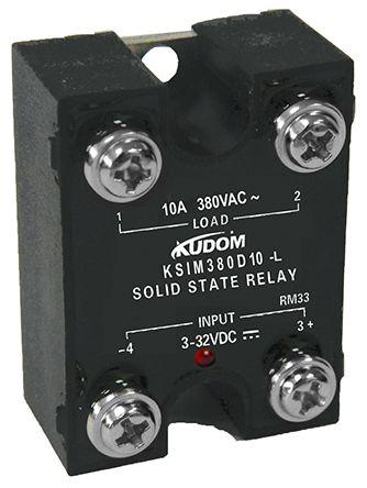 This is 10 A Solid State Relay Zero Cross Panel Mount Triac 440 V ac Maximum Load manufactured by Kudom. The manufacturer part number is KSIM380D10-L. The given dimensions of the product include 38.2 x 28.1 x 19mm. This is basically a single phase. While its maximum load voltage is 440 v ac. Its output device includes triac. Its load voltage range is about 48 440v ac . The product complies with all safety standards, such as ce. Additionally, it has a minimum 4 v dc control voltage . Additionally, its off state leakage current is 5 ma . This product uses zero cross switching mechanism. The terminal is a screw type. The product has -30 +80°c of operating temperature range. Moreover, it has a typical 4 32 v dc control voltage range . Its accurate length is 38.2mm. The product has a maximum 1 (+1/2 cycle) ms turn on time . The product also provides special features, such as internal rc protection circuit, led indication. It carries 10 a maximum load current. The product is available in panel mount configuration. The product comes in 28.1mm depth. In addition, the height is 19mm. The product has a maximum 32 v dc control voltage . It carries up to 48 v ac minimum load voltage.