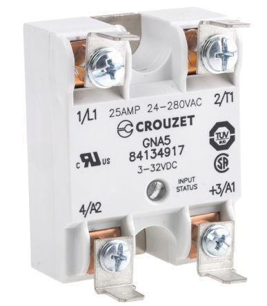 This is 25 A Solid State Relay Random Panel Mount Triac 280 V Maximum Load manufactured by Crouzet. The manufacturer part number is 84134917. While its maximum load voltage is 280 v. It carries 25 a maximum load current. Its output device includes triac. Its load voltage range is about 24 → 280v ac . The given dimensions of the product include 44.45 x 57.15 x 22.45mm. The product is available in panel mount configuration. The product has -20 → +80°c of operating temperature range. The product has a minimum 100 ma load current . Its accurate length is 44.45mm. In addition, the height is 22.45mm. The product comes in 57.15mm depth. Whereas, the minimum operating temperature of the product is -20°c. The product has a maximum 32 v control voltage . Moreover, it has a typical 3 → 32 v dc control voltage range . This product uses random switching mechanism. It has a maximum operating temperature of +80°c. The terminal is a screw type.