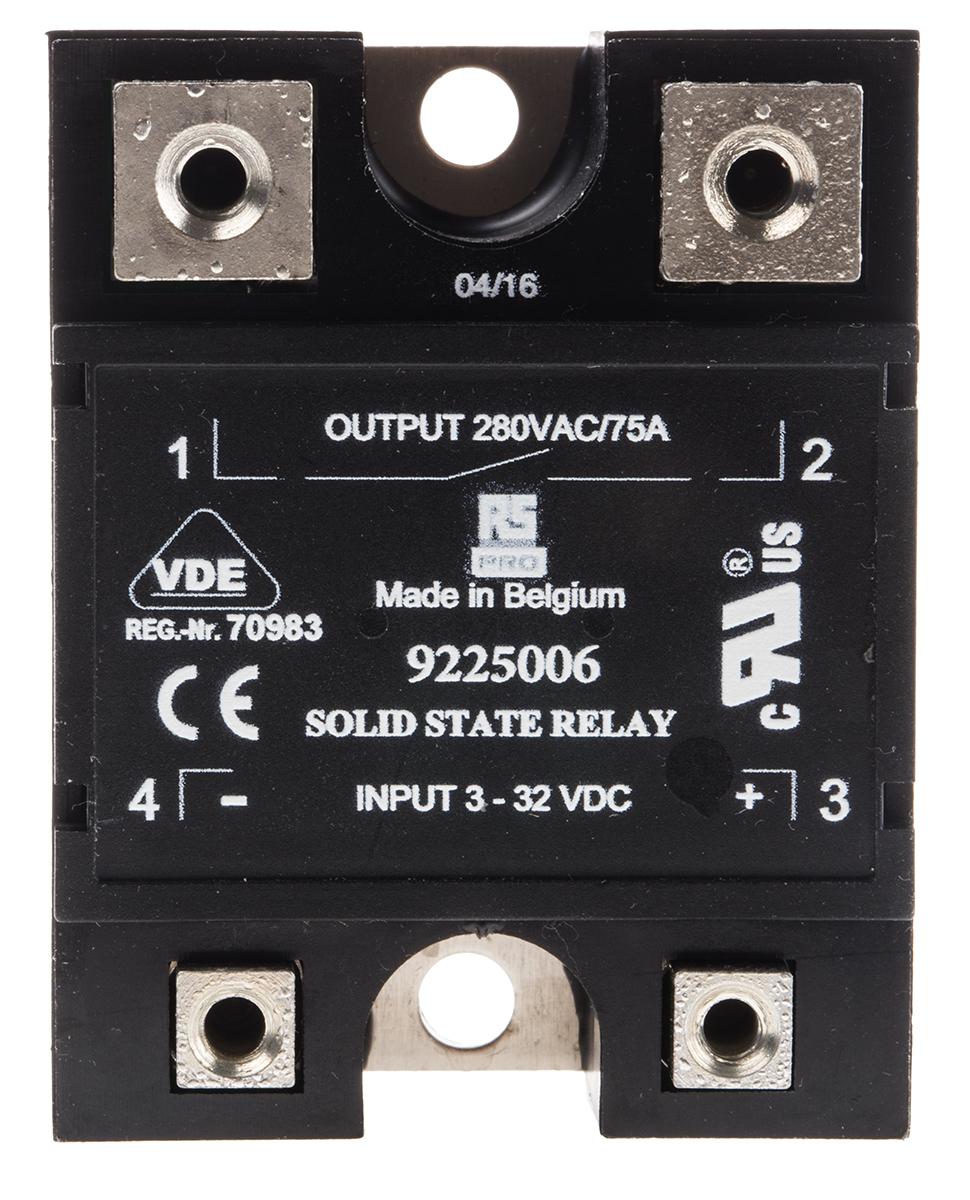 This is 75 A rms SPNO Solid State Relay Zero Cross Panel Mount Thyristor 280 V ac Maximum Load manufactured by RS Pro. The manufacturer part number is 922-5006. The given dimensions of the product include 57.2 x 44.5 x 23mm. This is basically a ac. While its maximum load voltage is 280 v ac. Its output device includes thyristor. Its load voltage range is about 24 → 280v ac . The product complies with all safety standards, such as ce, culus, vde. Additionally, it has a minimum 3 v dc control voltage . Additionally, its off state leakage current is 12 ma . This product uses zero cross switching mechanism. The terminal is a screw type. Moreover, it has a typical 3 → 32 v dc control voltage range . The product has -20 → +80°c of operating temperature range. The product has a minimum 0.4 a load current . The contact is equipped with spno configuration. Its accurate length is 57.2mm. The product has a maximum 11ms turn on time . The product also provides special features, such as designed to switch inductive loads like electric motors and valves (r-types) as well as resistive loads like heaters and lamps (z-type), hockey puck housing, panel mounted. It carries 75 a rms maximum load current. The product is available in panel mount configuration. The product comes in 44.5mm depth. In addition, the height is 23mm. The product has a maximum 32 v dc control voltage . It has equipped with 1 poles. It carries up to 24 v ac minimum load voltage.