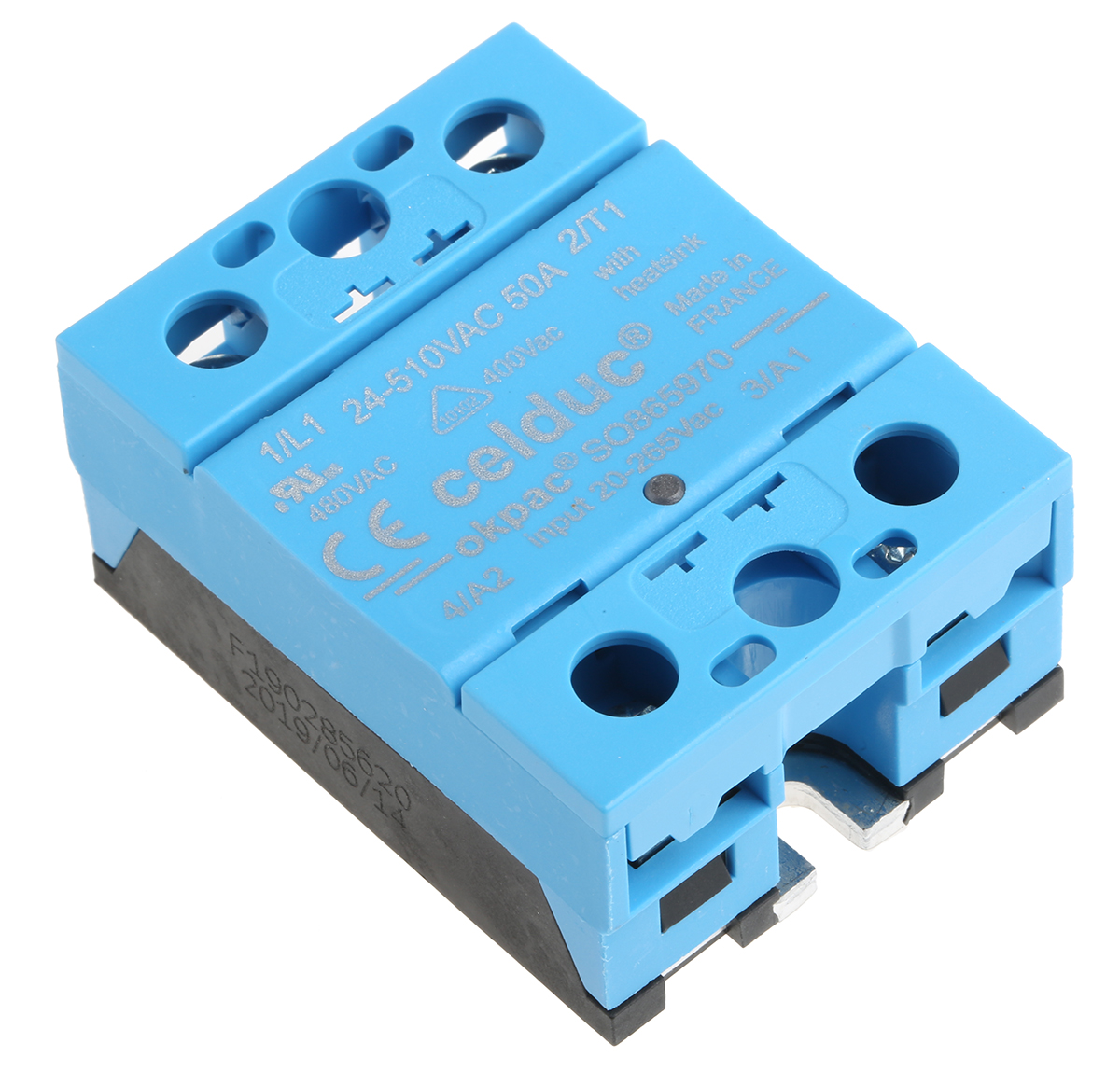 This is 60 A Solid State Relay Zero Crossing Chassis Mount Triac 510 V rms Maximum Load manufactured by Celduc. The manufacturer part number is SO865970. The given dimensions of the product include 58.5 x 45 x 30mm. This is basically a single phase solid state relay. It features okpac range. While its maximum load voltage is 510 v rms. Its output device includes thyristor. Its load voltage range is about 24 → 510v ac . The product complies with all safety standards, such as ce, vde, curus 100ka, eac. Additionally, it has a minimum 20v ac/dc control voltage . This product uses zero cross switching mechanism. It has a maximum operating temperature of +100°c. The terminal is a screw type. Moreover, it has a typical 20 → 265 v ac control voltage range . Whereas, the minimum operating temperature of the product is -40°c. The product has -40 → +100°c of operating temperature range. The product has a minimum 5 ma load current . Its accurate length is 58.5mm. The product has a maximum 30ms turn on time . It carries 60 a maximum load current. The product is available in panel mount configuration. The product so8, is a highly preferred choice for users. The product comes in 45mm depth. In addition, the height is 30mm. The product has a maximum 265 v control voltage . It has equipped with 1 poles. It carries up to 24 v ac minimum load voltage.
