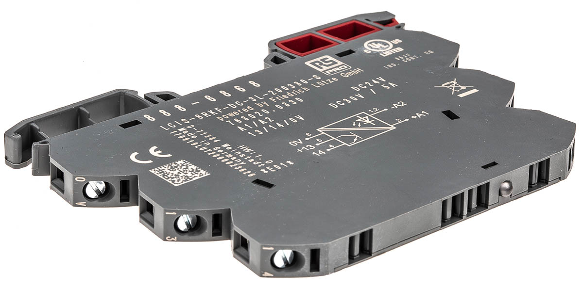 This is 5 A SPNO Solid State Relay DC DIN Rail MOSFET 30 V Maximum Load manufactured by RS Pro. The manufacturer part number is 888-6868. The given dimensions of the product include 6.2 x 73 x 93mm. While its maximum load voltage is 30 v. Its output device includes mosfet. Its load voltage range is about 10 → 30v . The product complies with all safety standards, such as csa, gl, ul. Additionally, it has a minimum 11 v control voltage . Additionally, its off state leakage current is 1 ma . This product uses dc switching mechanism. The terminal is a screw type. Moreover, it has a typical 11 → 30 v control voltage range . The product has -25 → +60°c of operating temperature range. The product has a minimum 1 ma load current . The contact is equipped with spst configuration. Its accurate length is 6.2mm. The product also provides special features, such as green led indicator, suppressor diode. It carries 5 a maximum load current. The product is available in din rail configuration. The product comes in 73mm depth. In addition, the height is 93mm. The product has a maximum 30 v control voltage . It carries up to 10 v minimum load voltage.