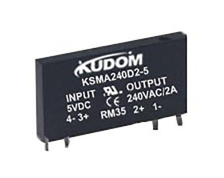 This is 2 A Solid State Relay Zero Cross PCB Mount 280 V ac Maximum Load manufactured by Kudom. The manufacturer part number is KSMA240D2-5. The given dimensions of the product include 28.2 x 5.2 x 15mm. This is basically a single phase. While its maximum load voltage is 280 v ac. Its load voltage range is about 48 280v ac . The product complies with all safety standards, such as ce, culus. Additionally, it has a minimum 4 v dc control voltage . Additionally, its off state leakage current is 1.5 ma . This product uses zero cross switching mechanism. The terminal is a pcb pin type. Moreover, it has a typical 4 6 v dc control voltage range . The product has -30 +80°c of operating temperature range. The product has a minimum 0.1 a load current . Its accurate length is 28.2mm. The product has a maximum 1 (+1/2 cycle) ms turn on time . The product also provides special features, such as coms drive compatible, optoelectronic isolation, ttl. It carries 2 a maximum load current. The product is available in pcb mount configuration. The product comes in 5.2mm depth. In addition, the height is 15mm. The product has a maximum 6 v dc control voltage . It carries up to 48 v ac minimum load voltage.