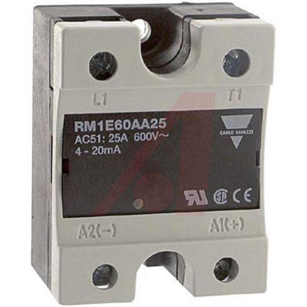 This is 25 A Solid State Relay Analogue Panel Mount 660 V ac Maximum Load manufactured by Carlo Gavazzi. The manufacturer part number is RM1E60AA25. While its maximum load voltage is 660 v ac. It carries 25 a maximum load current. Its load voltage range is about 410 → 660v ac . The given dimensions of the product include 44.8 x 58.2 x 29.6mm. The product is available in panel mount configuration. The product has -20 → +70°c of operating temperature range. It carries up to 410 v ac minimum load voltage. The product has a minimum 150 ma load current . Its accurate length is 44.8mm. In addition, the height is 29.6mm. The product comes in 58.2mm depth. The product has a maximum 1 s turn on time . The terminal is a screw type. This product uses analogue switching mechanism.