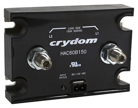 This is 150 A rms Solid State Relay Zero Cross Panel Mount Triac 660 V ac Maximum Load manufactured by Crydom. The manufacturer part number is HAC24A150H. The given dimensions of the product include 104 x 25.4 x 73.5mm. It provides a 10pf of capacitance value. While its maximum load voltage is 660 v ac. Its output device includes triac. Its load voltage range is about 24 → 280v ac . The product complies with all safety standards, such as cul. Additionally, it has a minimum 150 v dc control voltage . Additionally, its off state leakage current is 1 ma . This product uses zero cross switching mechanism. The terminal is a lug type. Moreover, it has a typical 150 → 270 v ac control voltage range . The product has -30 → +80°c of operating temperature range. The product has a minimum 0.15 a rms load current . Its accurate length is 104mm. The product has a maximum 1/2 cycles turn on time . The product also provides special features, such as locking input connector, with thermal pad. It carries 150 a rms maximum load current. The product is available in panel mount configuration. The product comes in 25.4mm depth. In addition, the height is 73.5mm. The product has a maximum 270 v dc control voltage . It carries up to 24 v ac minimum load voltage.