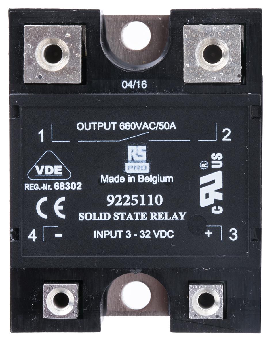 This is 50 A rms SPNO Solid State Relay Zero Cross Panel Mount Thyristor 660 V ac Maximum Load manufactured by RS Pro. The manufacturer part number is 922-5110. The given dimensions of the product include 57.2 x 44.5 x 23mm. This is basically a ac. While its maximum load voltage is 660 v ac. Its output device includes thyristor. Its load voltage range is about 24 → 660v ac . The product complies with all safety standards, such as ce, culus, vde. Additionally, it has a minimum 3 v dc control voltage . Additionally, its off state leakage current is 12 ma . This product uses zero cross switching mechanism. The terminal is a screw type. Moreover, it has a typical 3 → 32 v dc control voltage range . The product has -20 → +80°c of operating temperature range. The product has a minimum 0.4 a load current . The contact is equipped with spst configuration. Its accurate length is 57.2mm. The product has a maximum 11ms turn on time . The product also provides special features, such as hockey puck housing, panel mounted. It carries 50 a rms maximum load current. The product is available in panel mount configuration. The product comes in 44.5mm depth. In addition, the height is 23mm. The product has a maximum 32 v dc control voltage . It has equipped with 1 poles. It carries up to 24 v ac minimum load voltage.