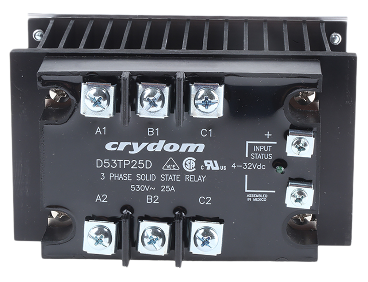 This is manufactured by Sensata-Crydom. The manufacturer part number is HS103DR-D53TP25D. While its maximum load voltage is 530 v ac. It carries 55 a maximum load current. Its load voltage range is about 48 → 530v ac . The given dimensions of the product include 132.1 x 76.2 x 99.2mm. The product is available in din rail configuration. The product hs103dr, is a highly preferred choice for users. The product has a minimum 0.05 a load current . Its accurate length is 132.1mm. In addition, the height is 99.2mm. Additionally, its off state leakage current is 10 ma . The product comes in 76.2mm depth. The product has a maximum 1/2 cycle turn on time . The product has a maximum 32 v control voltage . Moreover, it has a typical 3 → 32 v dc control voltage range . This product uses zero cross switching mechanism. It carries up to 48 v ac minimum load voltage. Additionally, it has a minimum 3 v dc control voltage . It is assigned with possible HTSUS value of 8536.41.0060. The product is rohs compliant. Moreover, it has screw terminal terminal style. Moreover, the product comes in hockey puck with heat sink. The possible product's input voltage is 3 ~ 32vdc. It has a typical 55 a load current. Furthermore, it has aac, zero cross output. It is shipped in bulk package . Its typical moisture sensitivity level is 1 (unlimited). It has an integral spst-no (1 form a) circuit. It has a long 24 weeks standard lead time. The product hs, is a highly preferred choice for users. The given load voltage is 48 v ~ 530 v. Moreover, it corresponds to hs103, a base product number of the product. The product is designated with the ear99 code number.