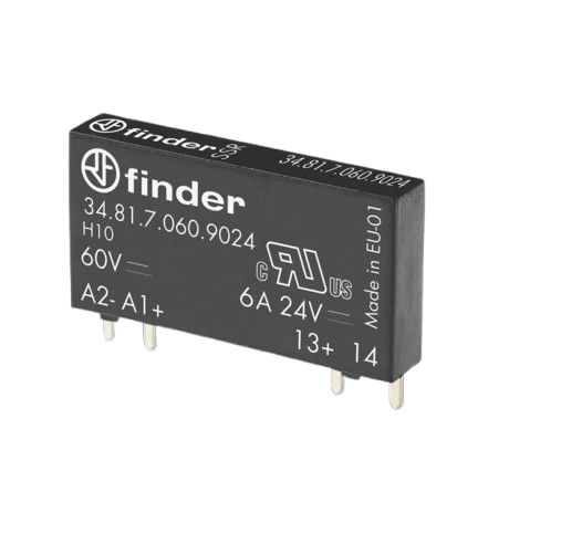 This is 6 A SPNO Solid State Relay PCB Mount 24 V dc Maximum Load manufactured by Finder. The manufacturer part number is 34.81.7.060.9024. The given dimensions of the product include 28 x 5 x 15mm. This is basically a solid state relay. While its maximum load voltage is 24 v dc. Its load voltage range is about 1.5 → 33v dc . The product complies with all safety standards, such as curus, eac. Additionally, it has a minimum 5 v dc control voltage . Its package is of sip4 style . Additionally, its off state leakage current is 0.001 ma . It has a maximum operating temperature of +70°c. Moreover, it has a typical 5 → 60 v dc control voltage range . Whereas, the minimum operating temperature of the product is -20°c. The product has -20 → +70°c of operating temperature range. The product has a minimum 0.001 a load current . The contact is equipped with spst configuration. Its accurate length is 28mm. The product has a maximum 0.02 ms turn on time . The product also provides special features, such as ultra slim. It carries 6 a maximum load current. The product is available in pcb mount configuration. The product 34, is a highly preferred choice for users. The product comes in 5mm depth. In addition, the height is 15mm. The product has a maximum 60 v dc control voltage . It has equipped with 1 poles. It carries up to 1.5 v dc minimum load voltage.