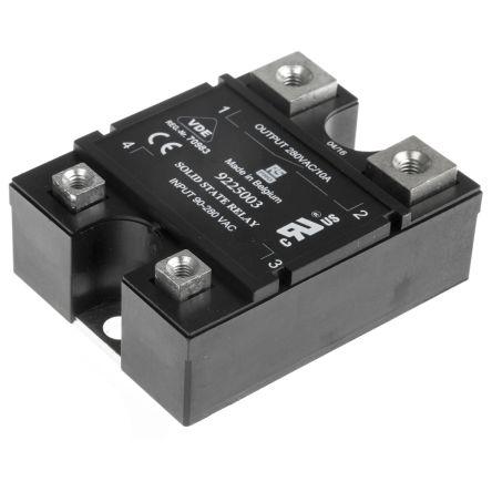 This is 10 A rms SPNO Solid State Relay Random Panel Mount Thyristor 280 V ac Maximum Load manufactured by RS Pro. The manufacturer part number is 922-5003. The given dimensions of the product include 57.2 x 44.5 x 23mm. This is basically a ac. While its maximum load voltage is 280 v ac. Its output device includes thyristor. Its load voltage range is about 24 → 280v ac . The product complies with all safety standards, such as ce, culus, vde. Additionally, it has a minimum 90 v ac control voltage . Additionally, its off state leakage current is 6 ma . This product uses random switching mechanism. The terminal is a screw type. Moreover, it has a typical 90 → 280 v ac control voltage range . The product has -20 → +80°c of operating temperature range. The product has a minimum 0.1 a load current . The contact is equipped with spno configuration. Its accurate length is 57.2mm. The product has a maximum 0.1 ms turn on time . The product also provides special features, such as designed to switch inductive loads like electric motors and valves (r-types) as well as resistive loads like heaters and lamps (z-type), hockey puck housing, panel mounted. It carries 10 a rms maximum load current. The product is available in panel mount configuration. The product comes in 44.5mm depth. In addition, the height is 23mm. The product has a maximum 280 v ac control voltage . It has equipped with 1 poles. It carries up to 24 v ac minimum load voltage.