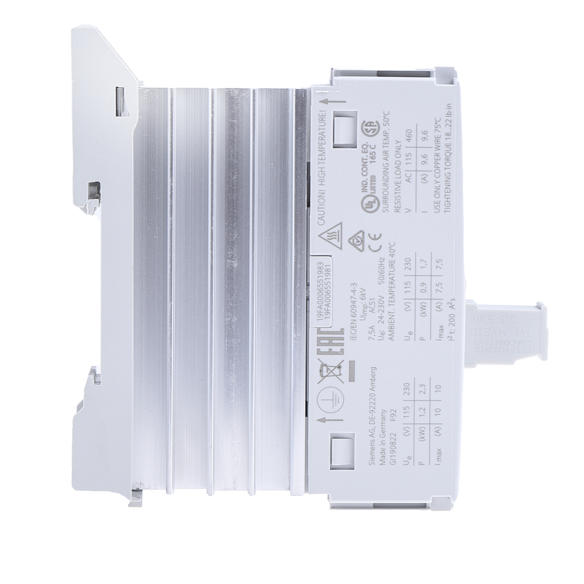 This is 10.5 A SPNO Solid State Relay Zero Crossing DIN Rail Thyristor 230 V Maximum Load manufactured by Siemens. The manufacturer part number is 3RF2310-1AA02. The given dimensions of the product include 22.5 x 94 x 100mm. It features sirius 3rf range. While its maximum load voltage is 230 v. Its output device includes thyristor. Its load voltage range is about 24 → 230v . Additionally, it has a minimum 15 v dc control voltage . Additionally, its off state leakage current is 10 ma . This product uses zero cross switching mechanism. It has a maximum operating temperature of +60°c. The terminal is a screw type. Moreover, it has a typical 15 → 24 v dc control voltage range . Whereas, the minimum operating temperature of the product is -25°c. The product has -25 → +60°c of operating temperature range. The product has a minimum 0.1 a load current . The contact is equipped with spst configuration. Its accurate length is 22.5mm. The product has a maximum 1/2 cycle turn on time . It carries 10.5 a maximum load current. The product is available in din rail configuration. The product 3rf2, is a highly preferred choice for users. The product comes in 94mm depth. In addition, the height is 100mm. The product has a maximum 24 v dc control voltage . It carries up to 24 v minimum load voltage.