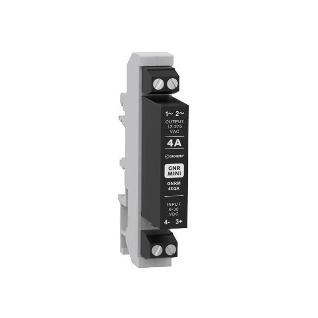 This is DIN Rail Solid State Relay 4 A rms Max. Load 275 Vrms Max. Load manufactured by Crouzet. The manufacturer part number is GNRM4D2A. While its maximum load voltage is 275 v rms. It carries 4 a rms maximum load current. Its output device includes triac. The product is available in din rail configuration. The product gnr mini, is a highly preferred choice for users. The product has a minimum 1 ma rms load current . The contact is equipped with spst configuration. It features ssr range. It carries up to 12 vrms minimum load voltage. This product uses special zero cross switching mechanism. It is assigned with possible HTSUS value of 8536.41.0030. The product is rohs3 compliant. Moreover, it has screw terminal terminal style. The product has -40°c ~ 80°c operating temperature range. It is approved by ce, curus, vde. Moreover, the product comes in module. The possible product's input voltage is 6 ~ 30vdc. It has a typical 4 a load current. In addition, it is reach unaffected. Furthermore, it has aac, zero cross output. It has an integral spst-no (1 form a) circuit. The product gnr, is a highly preferred choice for users. The given load voltage is 7 v ~ 36 v. In addition, bulk is the available packaging type of the product. The product is designated with the ear99 code number.