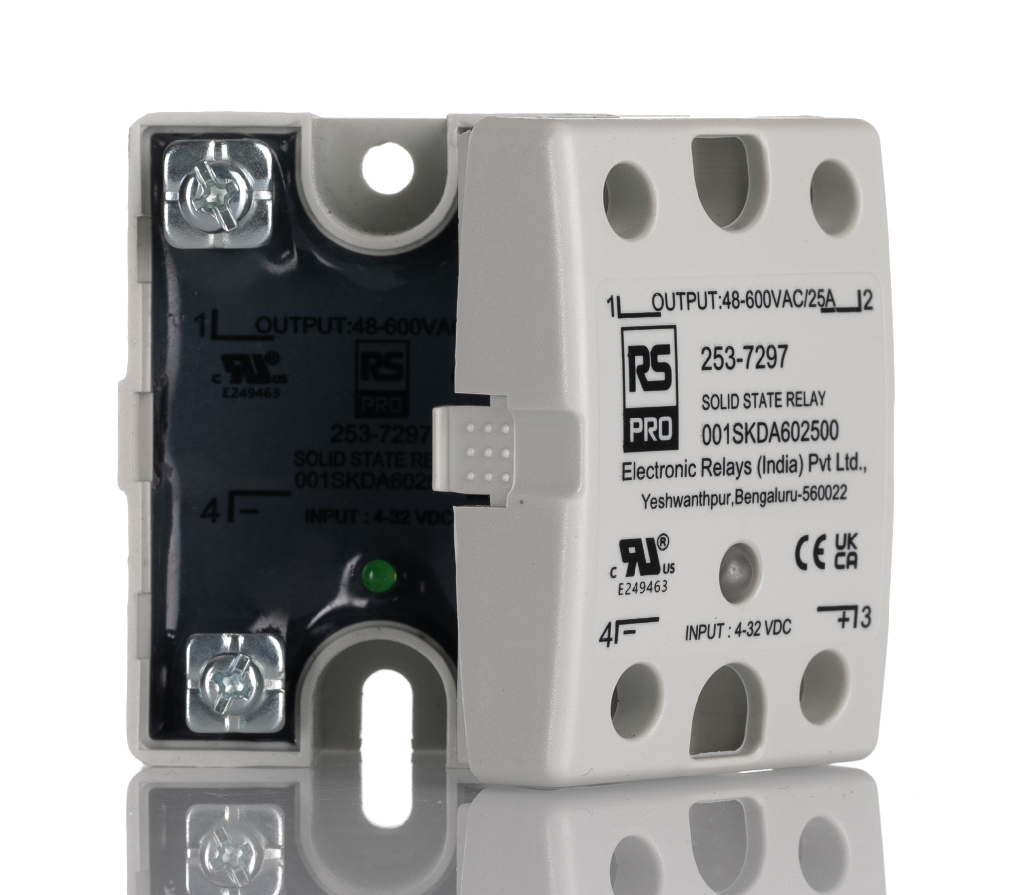 This is Solid State Relay 25 Amps Load Panel Mount Surface Mount 600 V rms Load manufactured by RS PRO. The manufacturer part number is 253-7297. While its maximum load voltage is 600 v rms. It carries 25 amps maximum load current. Its output device includes scr. Additionally, it has a minimum 3 v dc control voltage . The product is available in panel mount, surface mount configuration. The product has a minimum 100 ma rms load current . The contact is equipped with spst configuration. It carries up to 48 vrms minimum load voltage. The product has a maximum 32 v dc control voltage . This product uses random switching mechanism.