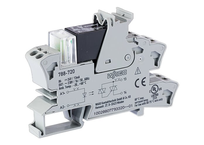 This is 857 Series Solid State Relay 1 A Load DIN Rail Mount 240 V ac/dc Load manufactured by WAGO. The manufacturer part number is 788-720. While its maximum load voltage is 240 v ac/dc. The product 857, is a highly preferred choice for users. It carries up to 24 v ac/dc minimum load voltage. The product is available in din rail configuration. It carries 1 a maximum load current.