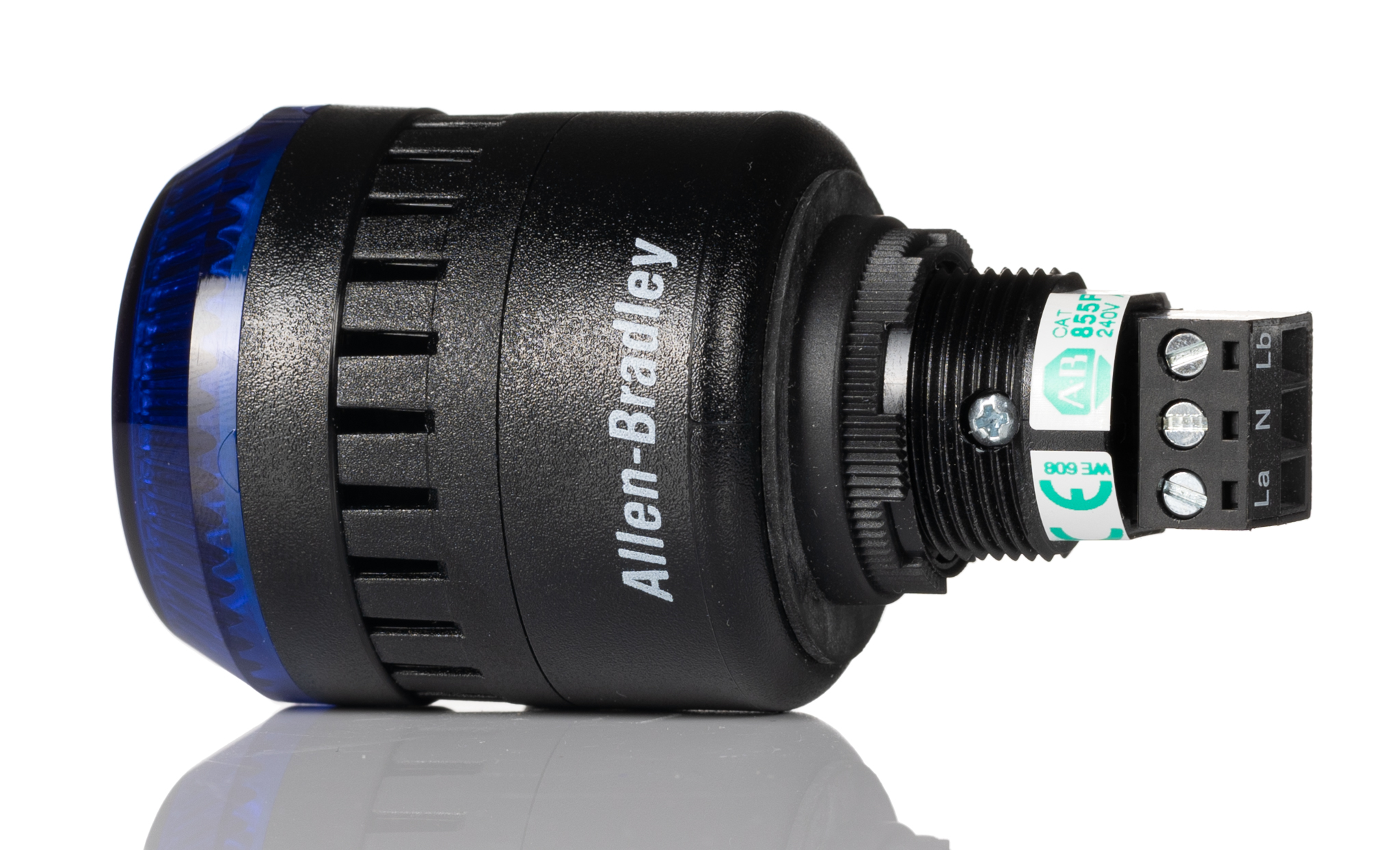 This is 855PC Sounder Beacon 98dB Blue LED 240 V ac manufactured by Allen Bradley. The manufacturer part number is 855PC-B20ME622. In addition, it has a/an electronic type sounder . The housing has an adorable black colour. The lens has an adorable blue colour. The product also features robust polycarbonate housing material. The product is integrated with a led bulb. The product 855pc, is a highly preferred choice for users. It has a minimum 85db decibel . It contains 98db decibels at 1 meter . The product is available in panel mount style. This product harbours ac current. The product has +60°c maximum temperature. Features 240 v ac supply voltage. While its minimum temperature is -25°c. The product provides a flashing, steady lighting effect. It has 98db maximum decibels .
