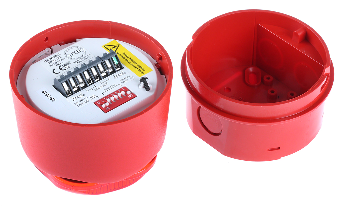 The 90020R5 combines high audibility and visibility with a powerful 110dB sound output and a bright red LED beacon. It is ideal for alert systems, ensuring reliable performance for fire alarms.