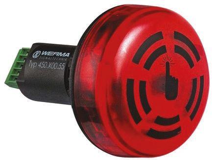 LED/Buzzer Combination with ASI function and Touch Acknowledgement Function - 450 Series Unique acknowledgement function: by gently pressing the front face the audible signal can be turned off leaving the optical signal on to highlight the malfunction LED Permanent light with additional continuous tone Silence the audible signal by lightly pressing the frontal area Acknowledgement signal fed back to the Master via AS-Interface Bus Life duration up to 50,000 hrs 2.8 kHz tone frequency Installation mounting for Ø 22.5 mm (Mzz x 1.5 mm) with anti-twist device LED/Buzzer