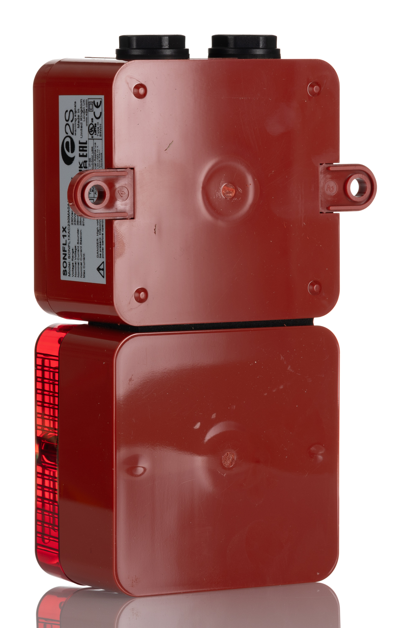 This is SONFL1X Sounder Beacon 100dB Red Xenon 230 V ac manufactured by e2s. The manufacturer part number is SONFL1XAC230R/R. In addition, it has a/an electronic type sounder . The housing has an adorable red colour. The lens has an adorable red colour. The product also features robust abs housing material. The product is integrated with a xenon bulb. It is IP rated with ip66. The product sonfl1x, is a highly preferred choice for users. It contains 100db decibels at 1 meter . The product is available in wall mount style. This product harbours ac current. The product has +55°c maximum temperature. Features 230 v ac supply voltage. It has 10 tones . While its minimum temperature is -25°c. The product provides a flashing lighting effect.