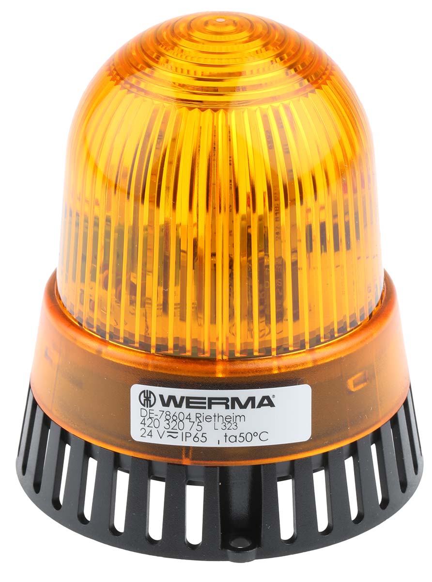 The Werma 420.320.75, 420 Sounder Beacon 105dB, Yellow LED, 24 V AC/DC, is a robust signaling device designed for industrial environments. It combines audible and visual alerts to ensure effective communication of critical information.