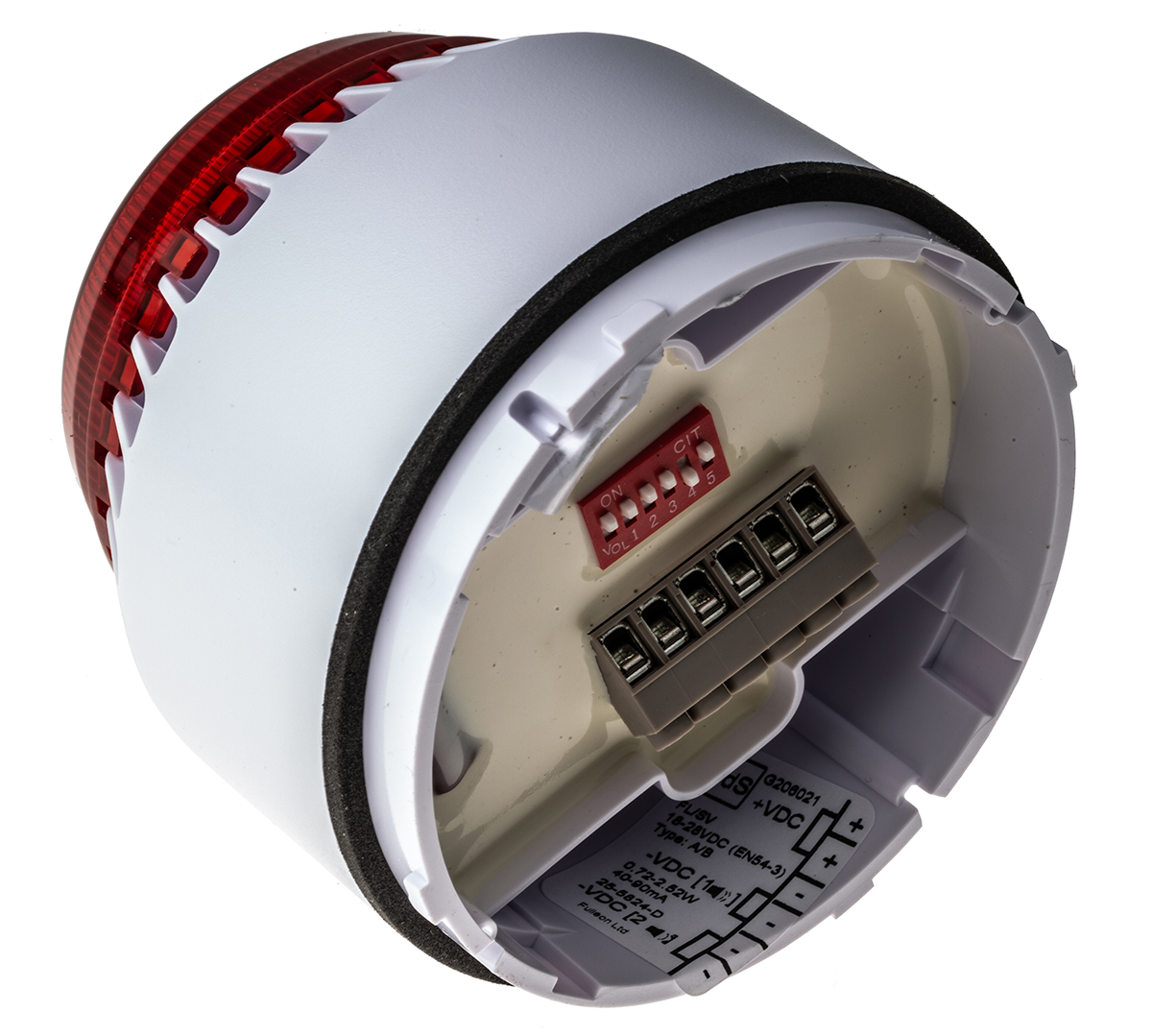 This is Flashni Sounder Beacon 101dB Red Xenon 18 → 28 V dc IP58 IP65 manufactured by Eaton Fulleon. The manufacturer part number is FL/RL/W/D/S. In addition, it has a/an electronic type sounder . The housing has an adorable white colour. The lens has an adorable red colour. The product also features robust abs housing material. The product is integrated with a xenon bulb. It is IP rated with ip58, ip65. The product flashni, is a highly preferred choice for users. It contains 101db decibels at 1 meter . The product is available in wall mount style. This product harbours dc current. The product has +55°c maximum temperature. Features 18 → 28 v dc supply voltage. It has 3 tones . While its minimum temperature is -10°c. The product also provides special features, such as en54-3. The product provides a flashing lighting effect. It has 101db maximum decibels .