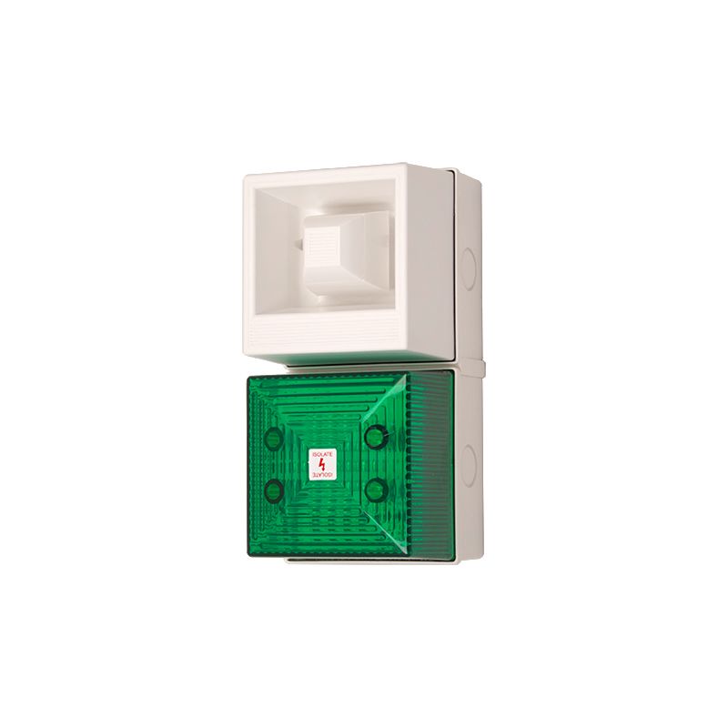 This is YL40 Series Green Sounder Beacon 24 V dc IP65 Wall Mount 108dB at 1 Metre manufactured by Clifford & Snell. The manufacturer part number is YL40/DL/G/25/WN/WR(2). The lens has an adorable green colour. It is IP rated with ip65. The product yl40, is a highly preferred choice for users. It contains 108db decibels at 1 meter . The product is available in wall mount style. This product harbours ac current. Features 24 v dc supply voltage. The product provides a flashing lighting effect.