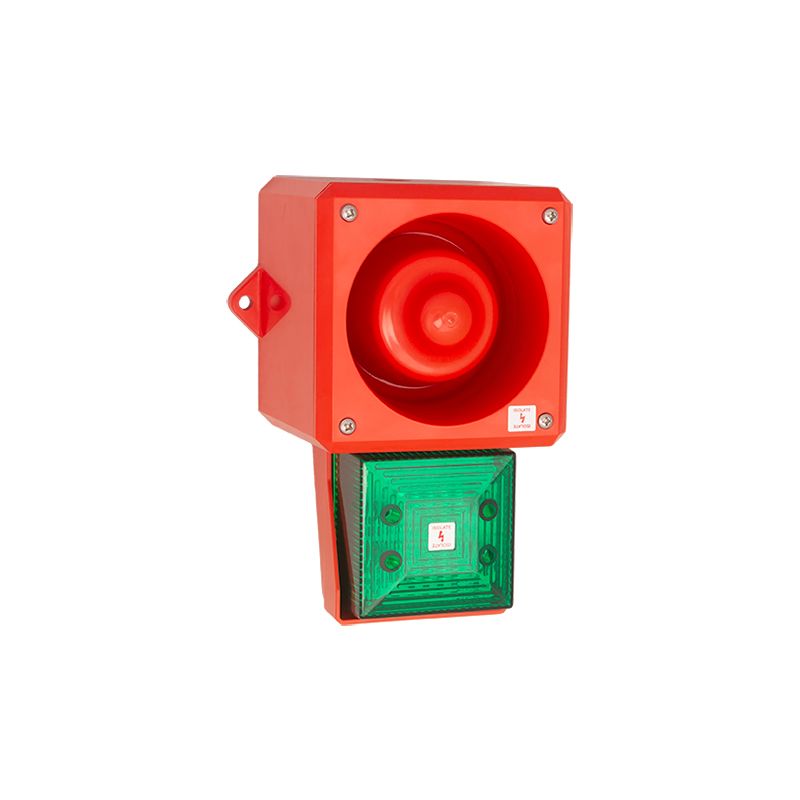 This is YL50 Hi Vis Series Green Sounder Beacon 24 V dc IP66 Wall Mount 112dB at 1 Metre manufactured by Clifford & Snell. The manufacturer part number is YL50/DL/G/25/RF/HV/WR. The lens has an adorable green colour. It is IP rated with ip66. The product yl50 hi vis, is a highly preferred choice for users. It contains 112db decibels at 1 meter . The product is available in wall mount style. This product harbours ac current. Features 24 v dc supply voltage. The product provides a flashing lighting effect.