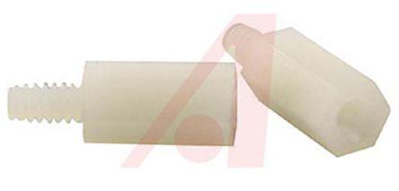 This is Hex Nylon Spacer manufactured by Abbatron. The manufacturer part number is 4382. It has a hex shape body . It is suitable for no.6 screw size . The product is made from highly stable and reliable nylon.