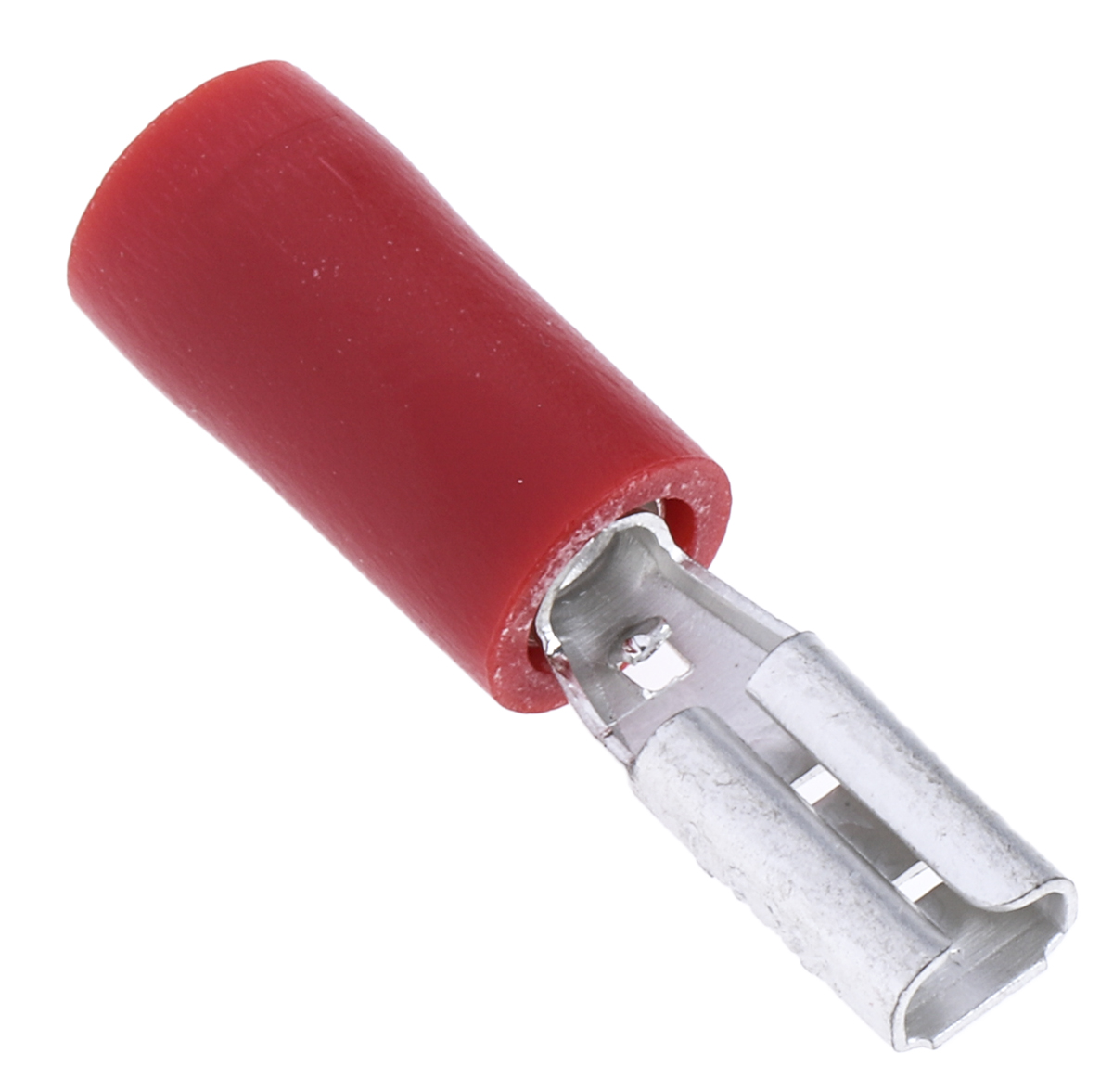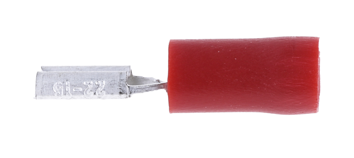 This is Red Insulated Crimp Receptacle 2.8 x 0.8mm 0.5mm² to 1.5mm² 22AWG to 16AWG Tin Plated manufactured by RS Pro. The manufacturer part number is 534-345. The wire has a maximum size of 1.5mm². In addition, female is the available "Gender" of the product. It has a decent red colour. It allows crimp termination method. While the minimum wire size AWG includes 22awg. Its tab size is about 2.8 x 0.8mm . It has a robust vinyl insulation material. The high-quality tin is used as contact plating material. It has an overall length of 19mm. Insulation Option: insulated. Its maximum wires size includes 16awg. On the other hand, the wire has 0.5mm² of minimum size. It comes in receptacle configuration. The product is made from sturdy brass materials.