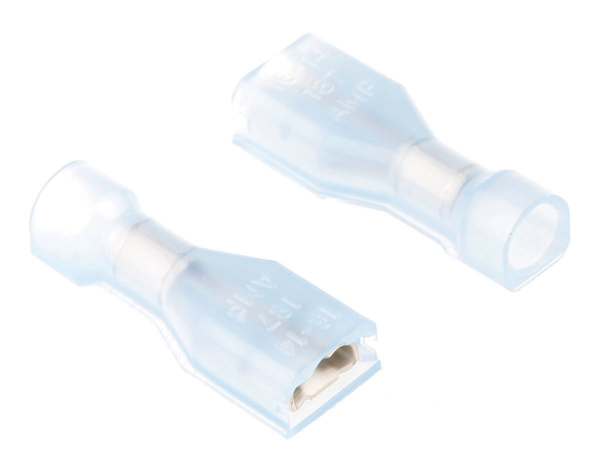 This is Ultra-Fast .187 Series Blue Insulated Crimp Receptacle 4.75 x 0.51mm 1.3mm² to 2mm² 16AWG to 14AWG manufactured by TE Connectivity. The manufacturer part number is 3-350816-2. The wire has a maximum size of 2mm². In addition, female is the available "Gender" of the product. It has a decent blue colour. It has an overall length of 0.855in. While the minimum wire size AWG includes 16awg. It allows crimp termination method. Its tab size is about 4.75 x 0.51mm . It has a robust nylon 66 insulation material. The high-quality tin is used as contact plating material. The product ultra-fast .187, is a highly preferred choice for users. Insulation Option: insulated. Its maximum wires size includes 14awg. On the other hand, the wire has 1.3mm² of minimum size. It comes in receptacle configuration. The product is made from sturdy brass materials.