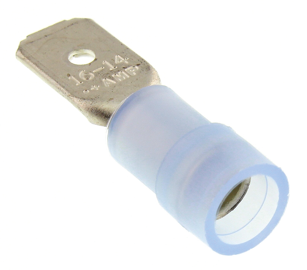 This is PIDG FASTON .250 Series Blue Insulated Crimp Tab Terminal 6.35 x 0.81mm Tin Plated manufactured by TE Connectivity. The manufacturer part number is 696369-1. It is supplied as unshrouded. The bespoke tab is 0.81mm thick. The tab is 6.35mm wide. In addition, male is the available "Gender" of the product. It has a decent blue colour. It has an overall length of 0.911in. While the minimum wire size AWG includes 14. It allows crimp termination method. Its tab size is about 6.35 x 0.81mm . It has a robust nylon insulation material. The high-quality tin is used as contact plating material. The product pidg faston .250, is a highly preferred choice for users. Insulation Option: insulated. Its maximum wires size includes 16. It comes in tab configuration. The product is made from sturdy brass materials.