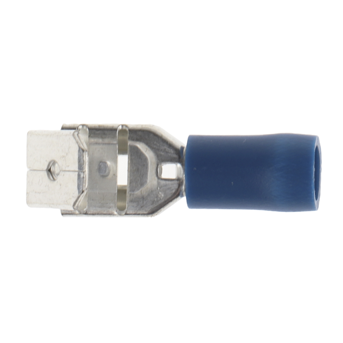 This is Insulated Crimp Piggyback Terminal 6.35 x 0.8mm 1.5mm² to 2.5mm² 16AWG to 14AWG Blue manufactured by RS Pro. The manufacturer part number is 534-711. It is supplied as unshrouded. The bespoke tab is 0.8mm thick. The tab is 6.35mm wide. The wire has a maximum size of 2.5mm². In addition, female is the available "Gender" of the product. It has a decent blue colour. It allows crimp termination method. While the minimum wire size AWG includes 16awg. Its tab size is about 6.35 x 0.8mm . It has a robust vinyl insulation material. The high-quality tin is used as contact plating material. It has an overall length of 20mm. Insulation Option: insulated. Its maximum wires size includes 14awg. On the other hand, the wire has 1.5mm² of minimum size. It comes in piggyback terminal configuration. The product is made from sturdy brass materials.