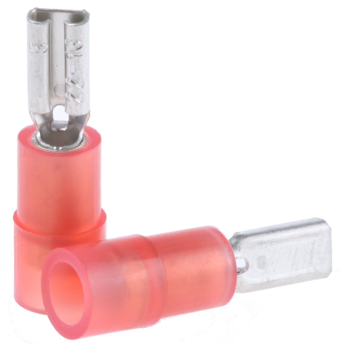 This is FDNYD1 Series Red Insulated Crimp Receptacle 2.8 x 0.5mm 0.5mm² to 1.5mm² 22AWG to 16AWG Copper Plated manufactured by RS Pro. The manufacturer part number is 267-4192. The wire has a maximum size of 1.5mm². In addition, female is the available "Gender" of the product. It has a decent red colour. It allows crimp termination method. While the minimum wire size AWG includes 22awg. Its tab size is about 2.8 x 0.5mm . It has a robust nylon insulation material. The high-quality tin is used as contact plating material. It has an overall length of 19.6mm. Insulation Option: insulated. Its maximum wires size includes 16awg. On the other hand, the wire has 0.5mm² of minimum size. It comes in receptacle configuration. The product is made from sturdy brass materials.
