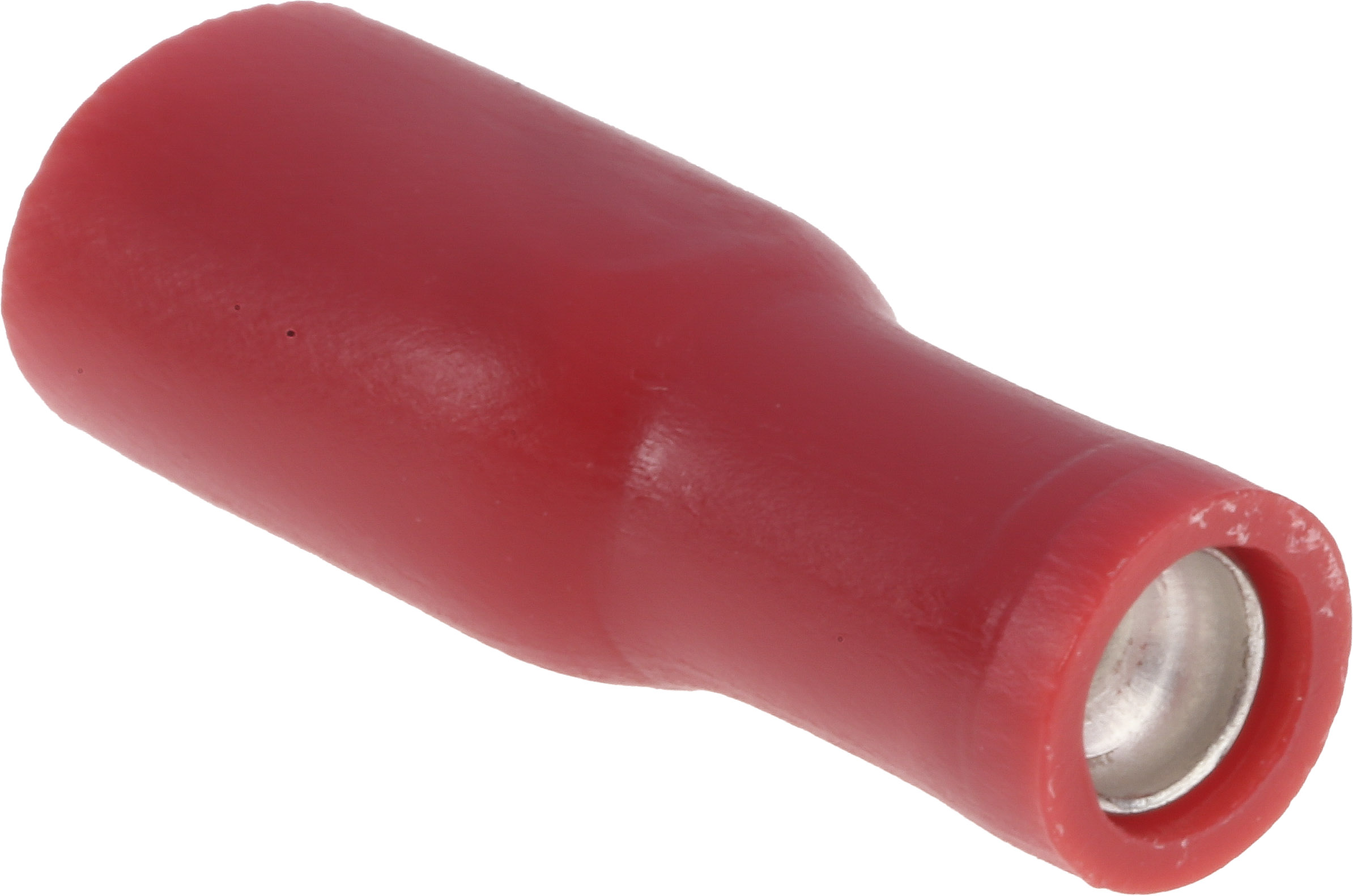 This is 38 Series Red Insulated Crimp Receptacle 4.8 x 0.5mm 0.5mm² to 1.5mm² 22AWG to 16AWG Tin Plated manufactured by RS Pro. The manufacturer part number is 534-418. The wire has a maximum size of 1.5mm². In addition, female is the available "Gender" of the product. It has a decent red colour. It allows crimp termination method. While the minimum wire size AWG includes 22awg. Its tab size is about 4.8 x 0.5mm . It has a robust vinyl insulation material. The high-quality tin is used as contact plating material. It has an overall length of 19mm. Insulation Option: insulated. Its maximum wires size includes 16awg. On the other hand, the wire has 0.5mm² of minimum size. It comes in receptacle configuration. The product is made from sturdy brass materials.